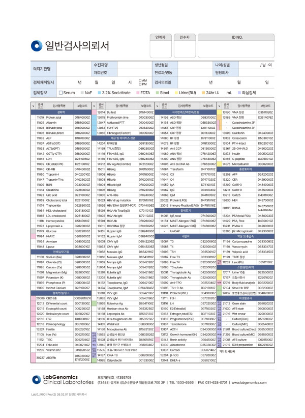 일반검사의뢰서 최고관리자 2024-10-11 최고관리자 0 472 2024.10.11 14:08 2026.02.02 16:46 LabG_IR001 Rev2 26.02.01 일반 검사의뢰서 1p.pdf (3.4M) 일반검사의뢰서