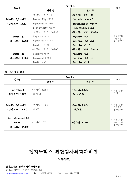 수정항목 : Rubella IgG Avidity [검사코드: 15082]